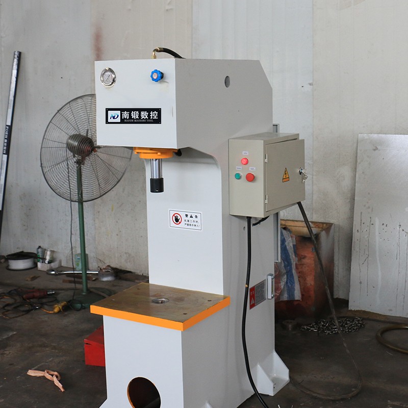 單臂油壓機 用途: 本機器為單柱校正油壓機,用途十分廣泛,適用于軸類零件和型材的校正;軸套件的壓裝;板材的彎曲、壓印等工藝。 油壓機可用手柄和腳踏開關操作,壓力可調,